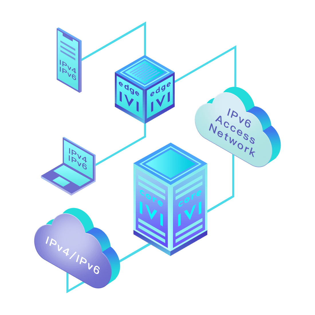 對正在進(jìn)行IPv6整體升級規(guī)劃的運營商,應(yīng)用IPv6升級方案2.5,通過IVI無狀態(tài)翻譯技術(shù)和純IPv6接入網(wǎng)絡(luò),為雙棧客戶端和雙棧服務(wù)器提供連通服務(wù)。